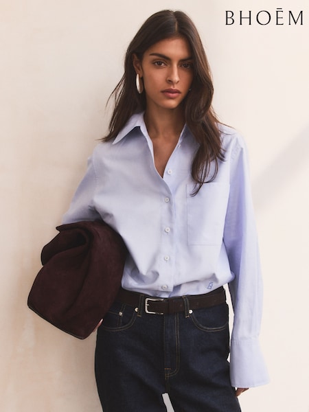 BHOEM Blue Oxford Cotton Shirt With Embroidery Detail