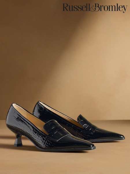 Russell & Bromley Black Totter Kitten Heel Loafers