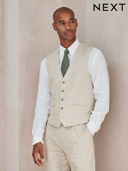 Neutral Check Cotton Linen Blend Suit Waistcoat
