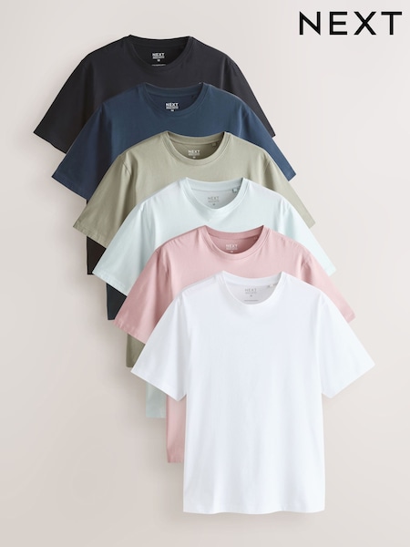 Dusky Pastels Pink/Sage/Aqua/White/Navy/Black Regular Fit Essential Cotton T-Shirts 6 Pack