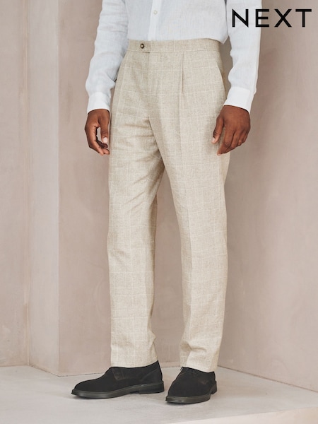Neutral Check Cotton Linen Blend Suit Trousers