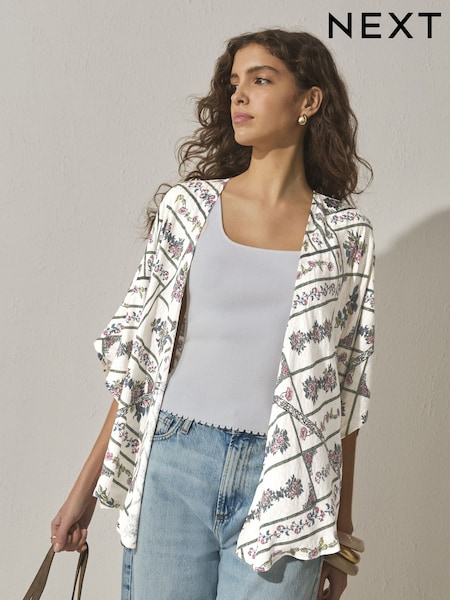 Evans Cream Printed Kimono