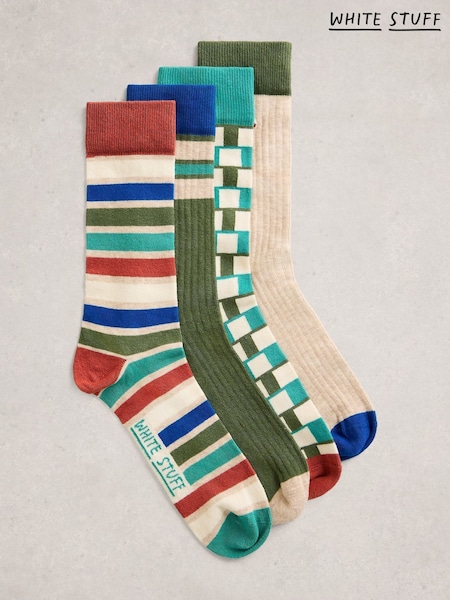 White Stuff Natural Patterned Ankle Socks 4 Pack